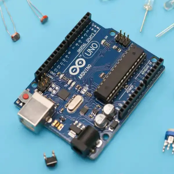 Arduino ploča radi na niskonaponskim vrijednostima, obično 5V, i može se napajati putem USB kabela ili eksternim izvorom napajanja.